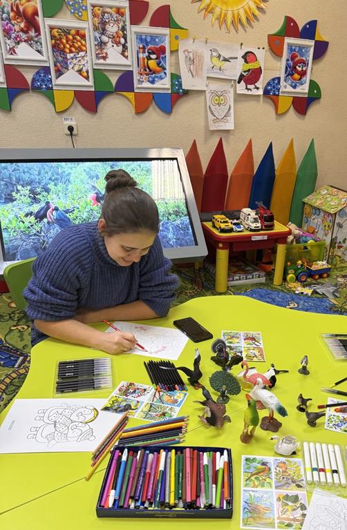 В творческий процесс погрузились мамы и бабушки воспитанников отделения реабилитации для детей-инвалидов № 2 Социального центра «Ступинский». Они поддержали детей в изучении лексической темы и с удовольствием рисовали и раскрашивали птиц. Также взрослые рассказывали интересные и смешные истории из своей жизни, где главными героями были птицы. Занятие по арт-терапии прошло в рамках проекта «Мамино время».