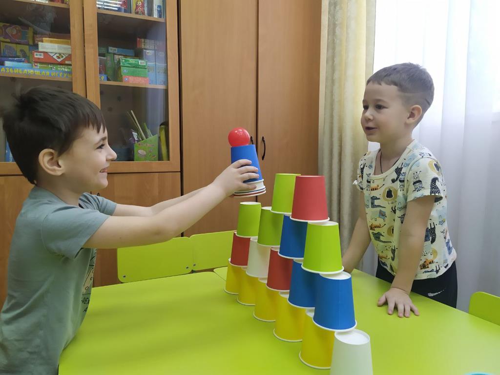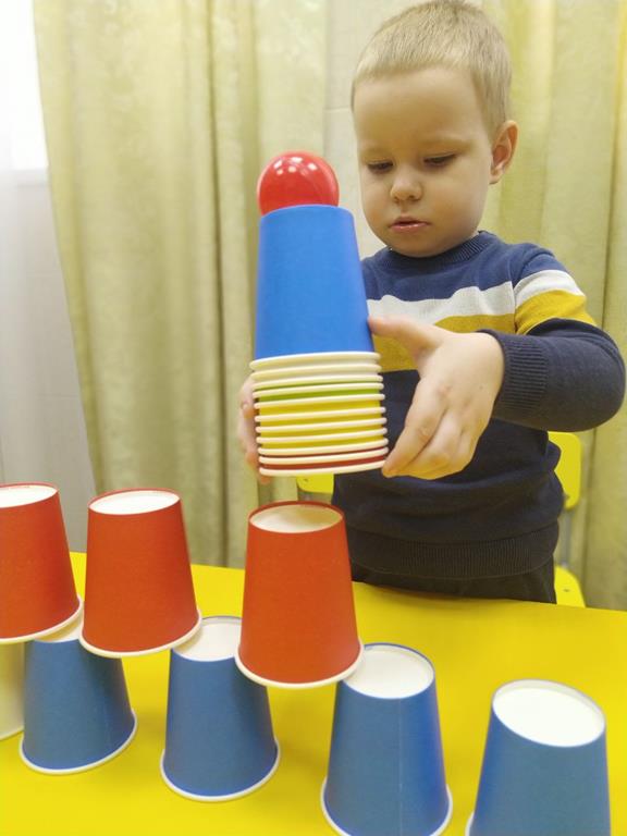 Игры с разноцветными бумажными стаканчиками и яркими пластиковыми шариками прекрасно тренируют мелкую моторику пальцев и кистей рук, внимание, усидчивость, ловкость и координацию движений, цветовосприятие, логическое и пространственное мышление, творческие способности и социальные навыки. Этот нехитрый предмет используют в своей работе специалисты отделения реабилитации для детей-инвалидов № 2 Социального центра «Ступинский». При желании игры можно с лёгкостью повторить и в домашней обстановке.