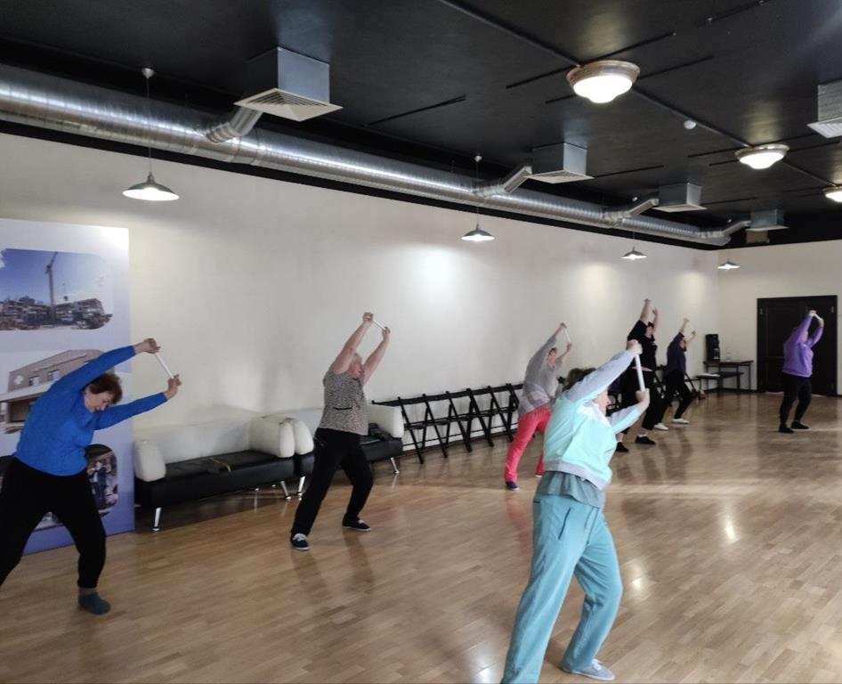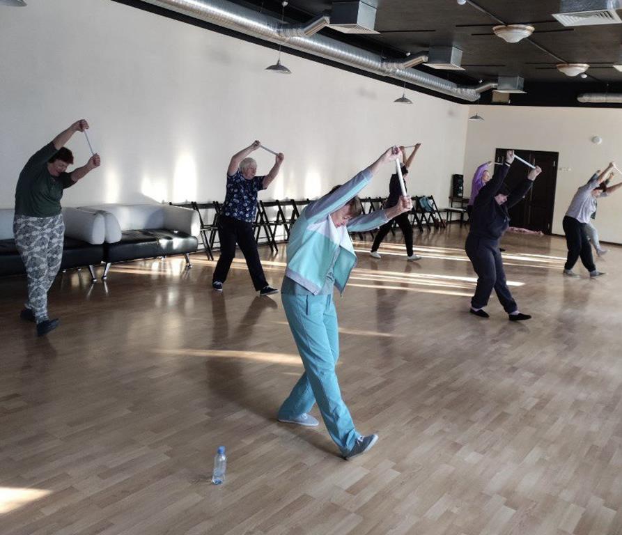 Упражнения с короткой гимнастической палкой регулярно делают на занятиях физкультурой каширские участники проекта «Активное долголетие». Такие упражнения помогают улучшить подвижность грудного отдела позвоночника и плечевых суставов.