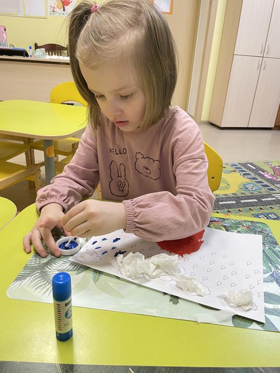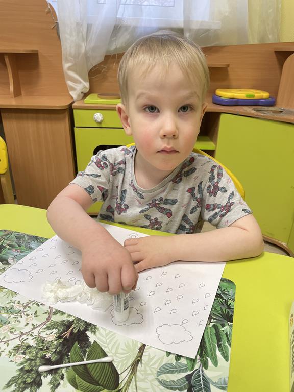 Нетрадиционные техники рисования осваивают воспитанники отделения реабилитации для детей-инвалидов № 1 Социального центра «Ступинский». На очередном занятии ребята создавали композицию «Дождик». Для работы использовали салфетки, ватные палочки.