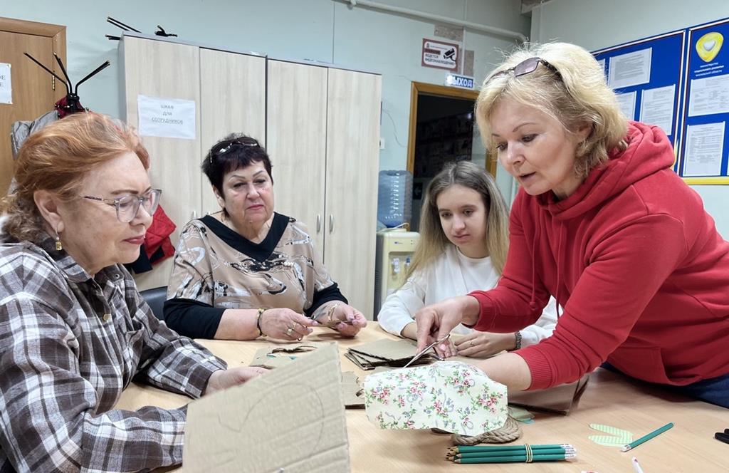 Мастер‑класс по декоративно-прикладному искусству прошёл в Кашире для пенсионеров. Участники проекта «Активное долголетие» учились создавать стильные подставки под кружки. Для работы людям старшего поколения понадобилось: картон, шпагат, ткань.